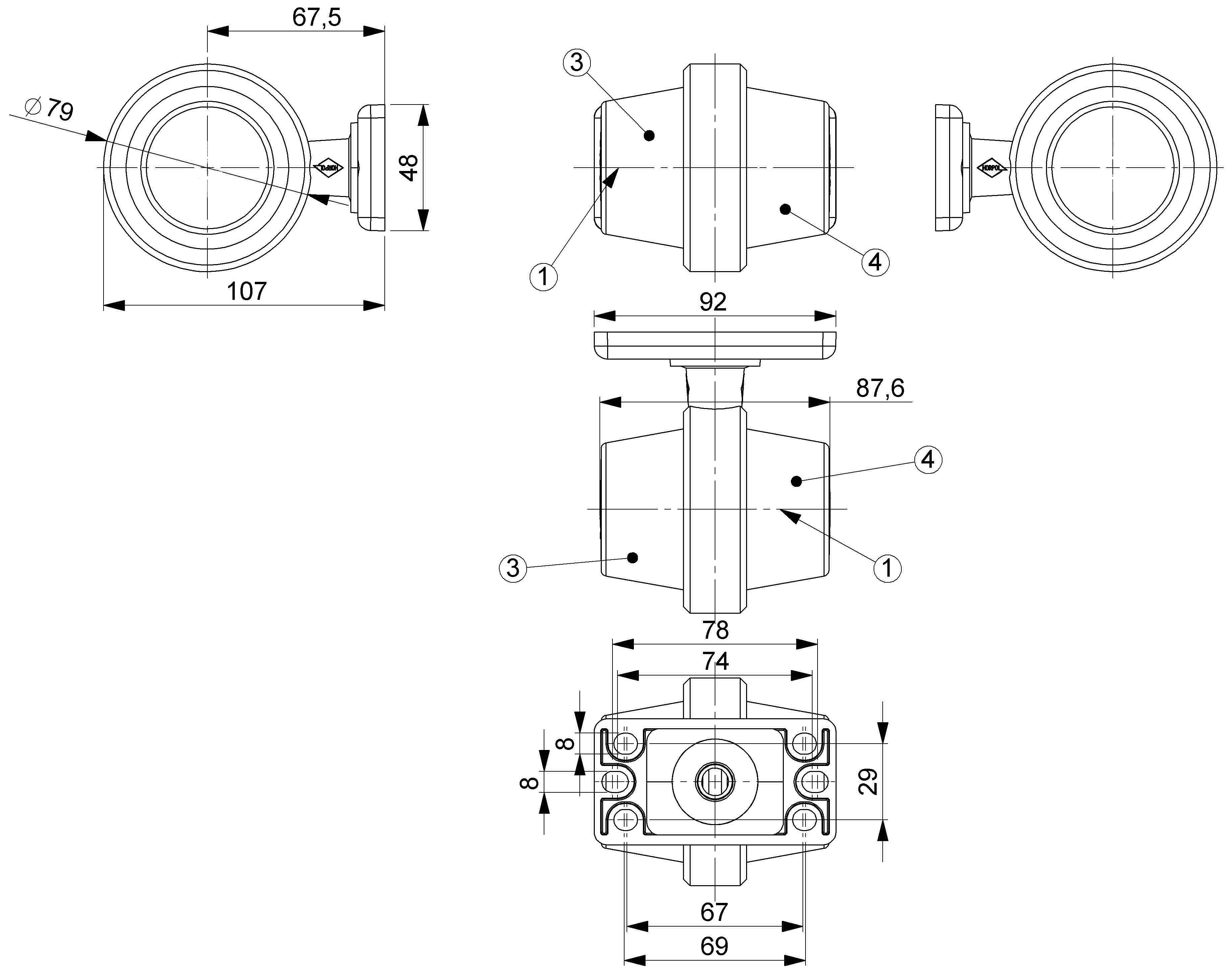 Direction indicator, short arm, amber lens, 0,6 m cable “old school” version