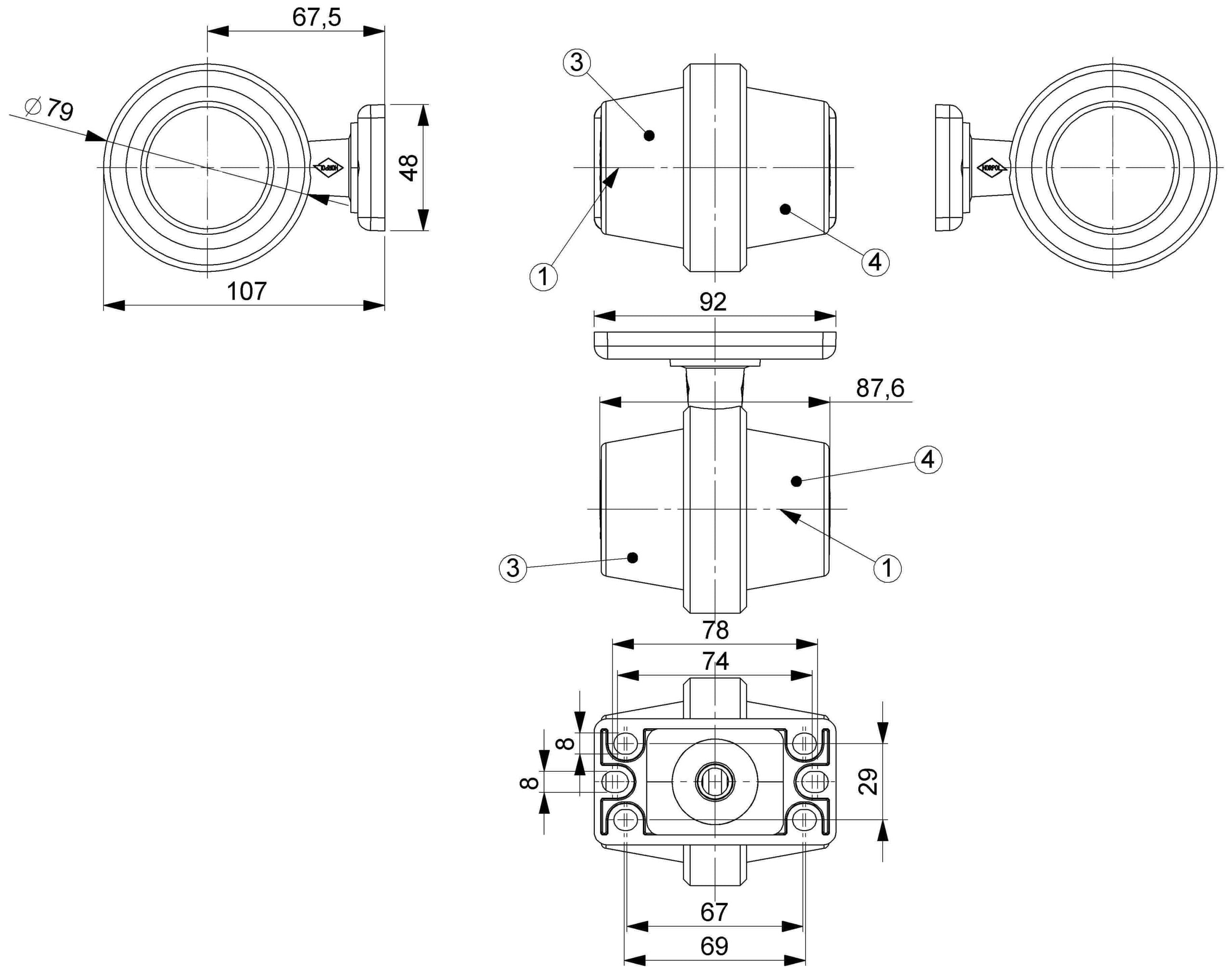 Direction indicator, short arm, amber lens, 0,5 m cable, neon version
