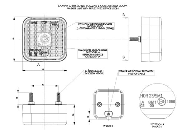Lampa obrysowa kwadratowa z odblaskiem, pomarańczowa