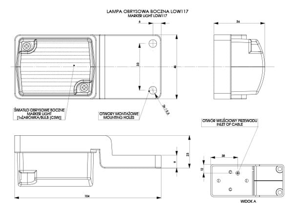 Marker light, rectangular – small, hanging, orange