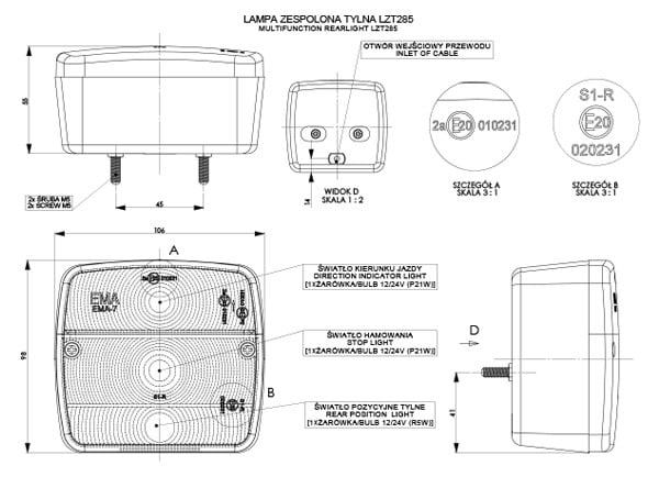 Trailer multifunction rear light