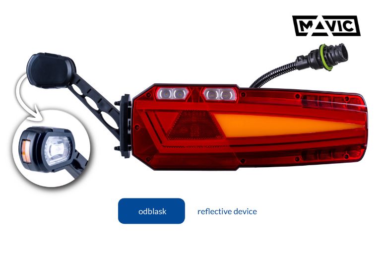 Our offer includes also MAVIC lights with retroreflective triangle and marker lamp LZD 3049/H101/AMP (left), LZD 3050/H101/AMP (right).