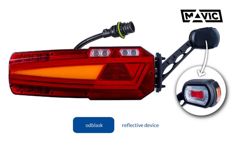 Our offer includes also MAVIC lights with retroreflective triangle and marker lamp LZD 3049/H101/AMP (left), LZD 3050/H101/AMP (right).