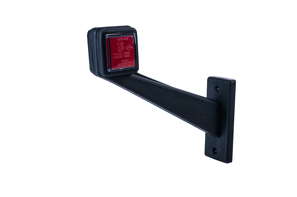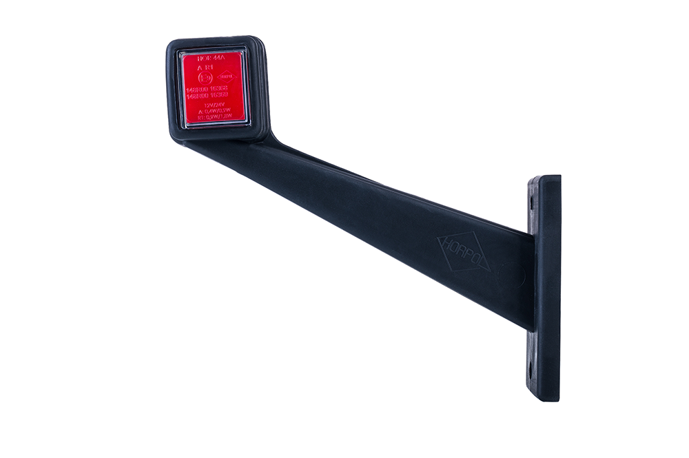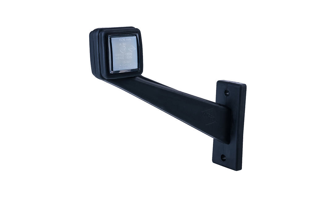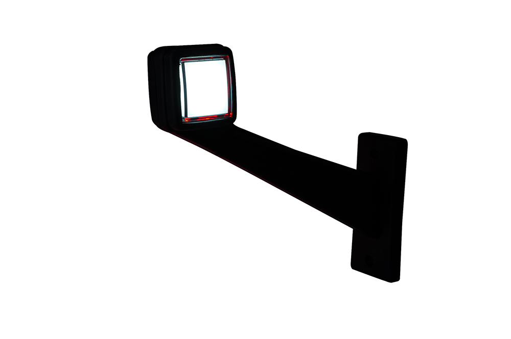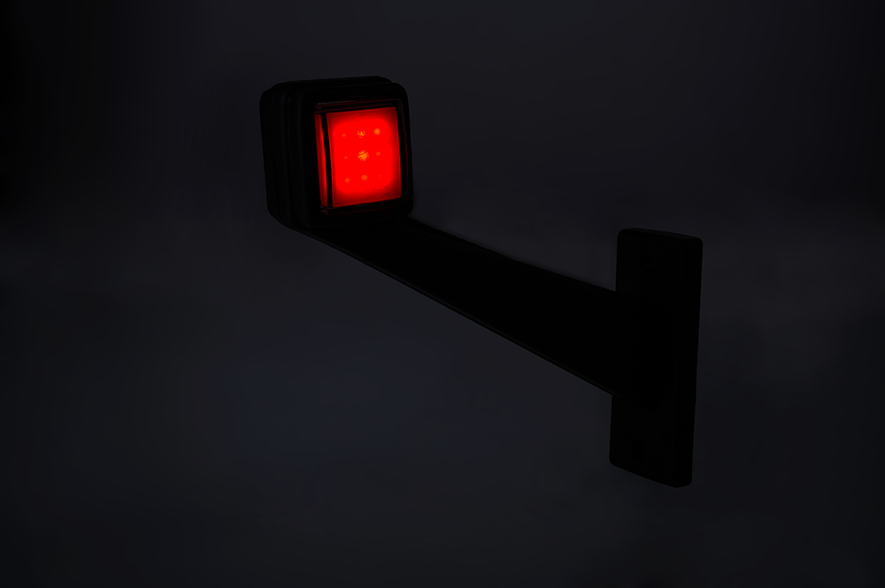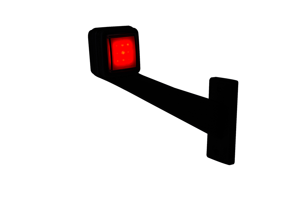 LD 3118/P is a marker light on a long diagonal arm that comes with a flexible hanger. It is specifically designed for mounting on the right side of the vehicles, ranging from small trailers to trucks and semi-trailers.